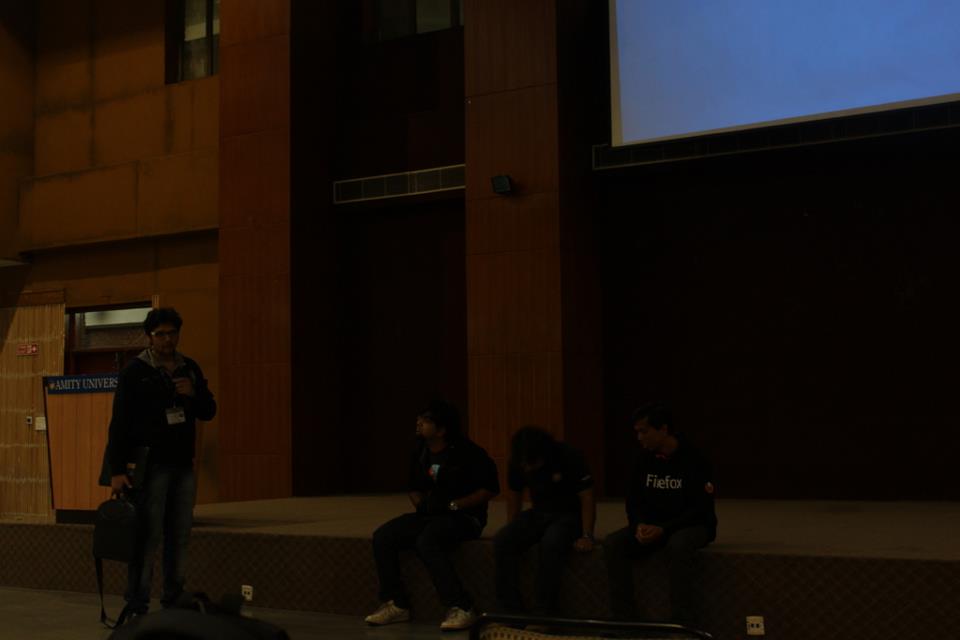 An hour-long lunch break was announced, during which i got to interact with a Google developer from Nigeria, Mr. Victor Udoewa (who happened to be in Amity, teaching HTML 5, CSS 3 and a little JS to a group of students, as a part of a pilot project launched by Google itself, to test a classroom-project that it is going to launch sometime later). Also i met a MozRep from Sri Lanka, Mr. Rohana Dasanayaka, who happened to be in Delhi around the time of this event. I asked him about his college days and got to know how he got into the Mozilla community. He is a nice chap to talk to. A very intellectual personality.