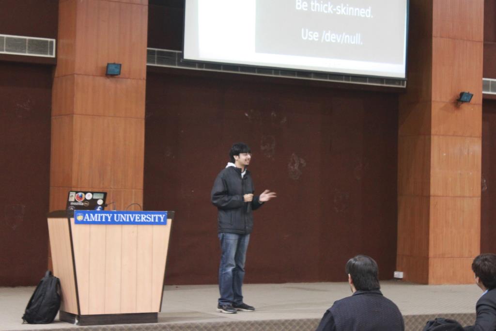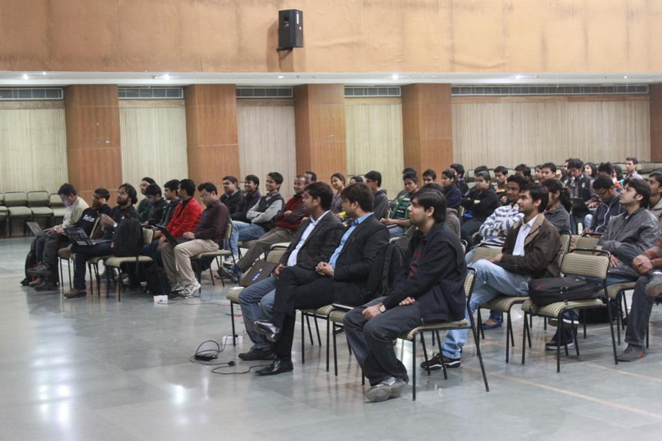 In one hall, Mr. Devesh Batra and Mr. Akshay Katyal gave a hands-on session on “the trending HTML5 & CSS3 with the basics of JQuery and Responsive Web Design”. I didn’t attend this one, so ain’t gonna write anything about it, but yeah, from what i heard, it was a good one. I did a sneak-peak too from time to time. Hmm.. it was good.