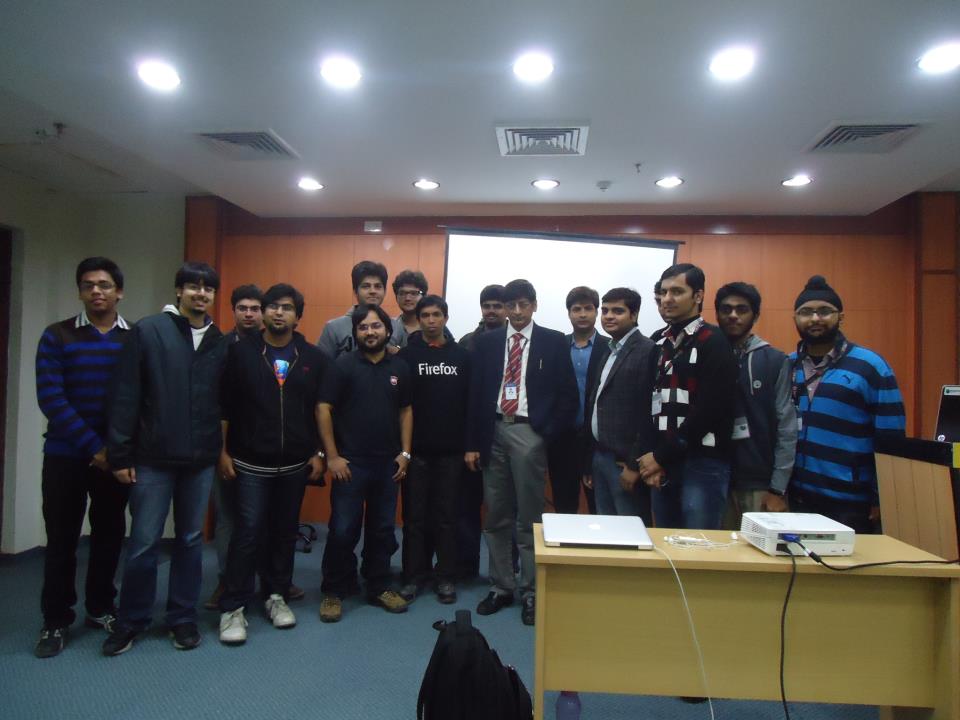 It started off with an interactive session from one of the speakers, Mr. VikasH Agrawal (a fun-loving H for Hitler type of guy. Hey Vikash, i hope you don’t kill me after this!) on why Open Source should be the way of life & what it takes to complete a GSoC successfully. Afterwards, a little chatting on version-control systems & the discussion was then taken over, by Mr. Rishab Arora ( the coder from abroad, and by abroad i mean, from another planet, evident from his handle, being ‘spacetime’ π ) who ended up showing the idiosyncrasies of a developer’s world and also talked about his experiences on GSoC.